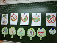 Ребята разделились на три группы, чтобы выполнить следующие задания: - создание экологических знаков-указателей "Сохраним лес!"; - участие в творческой мастерской "Закладка для книги". В первом задании детям были даны силуэты деревьев из бумаги и круги для изображения экологических знаков. Перед началом работы ребята рассмотрели некоторые примеры экологических знаков и создали свои. На школьной доске "вырос" лес, созданный руками ребят! Вторая часть мастер-класса была посвящена изготовлению "Закладки для книги" из кусочков оставшихся обоев способом оригами. Ребята очень постарались сложить закладку в виде карандаша по этапам. Мастер-класс учащимся очень понравился, все остались довольны! | |